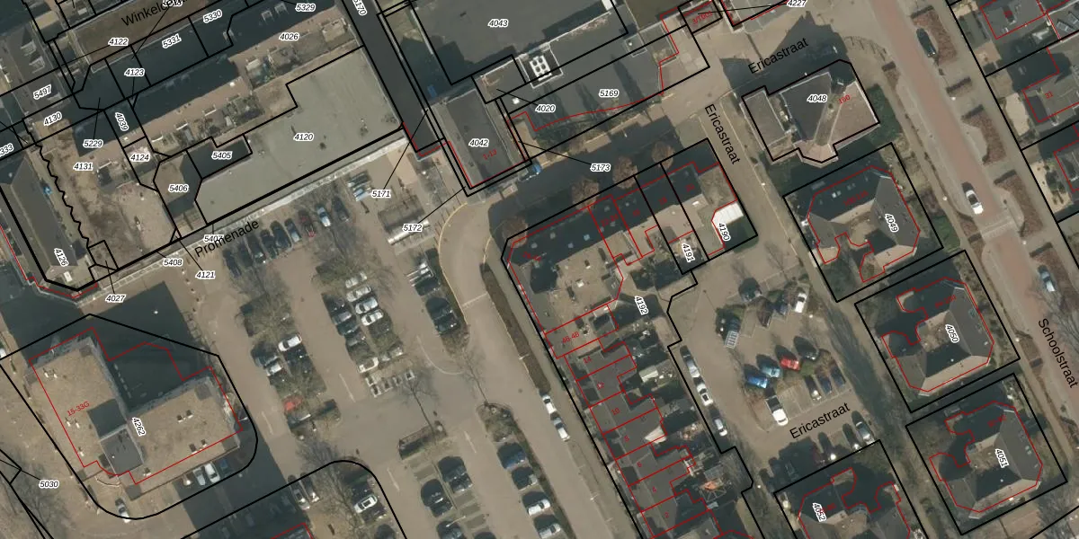 Het perceel waarop Ericastraat 28 staat heeft een oppervlakte van 2015 m². Dit is een zeer groot perceel. De perceeloppervlakte wordt geregistreerd door het Kadaster. Gedetailleerde informatie over de maten van dit perceel kunt u vinden in het rapport Kadastrale kaart met maatvoering van Ericastraat 28.