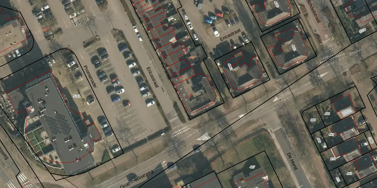 Het perceel waarop Ericastraat 68 staat heeft een oppervlakte van 2015 m². Dit is een zeer groot perceel. De perceeloppervlakte wordt geregistreerd door het Kadaster. Gedetailleerde informatie over de maten van dit perceel kunt u vinden in het rapport Kadastrale kaart met maatvoering van Ericastraat 68.