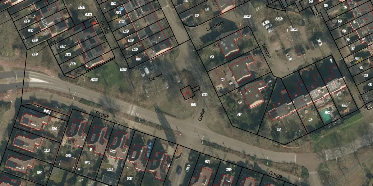 Gebruik de zoekbalk of klik op een perceel voor informatie over de adressen binnen dit perceel.