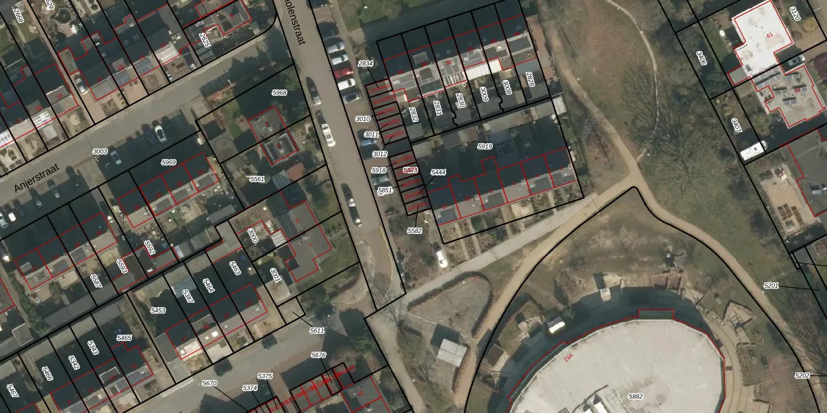 Het perceel waarop het adres ligt is HMN01-G-5582. De afkorting 'HMN01' staat voor kadastrale gemeente Heumen. Het perceel is kleiner dan gemiddeld in Heumen. Het perceel is 18 m² groot, terwijl het gemiddelde ligt op 2943,38 m². De grootste perceeloppervlakte in de kadastrale gemeente is 50,5 ha. De kleinste oppervlakte bedraagt 0 m². Op het perceel bevinden zich geen andere adressen. In de Basisregistratie Kadaster (BRK) werden de grenzen van het perceel geregistreerd op 27-01-2012.