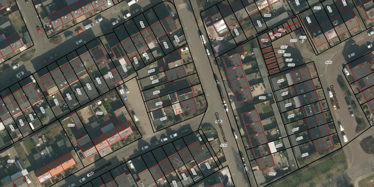 Gebruik de zoekbalk of klik op een perceel voor informatie over de adressen binnen dit perceel.