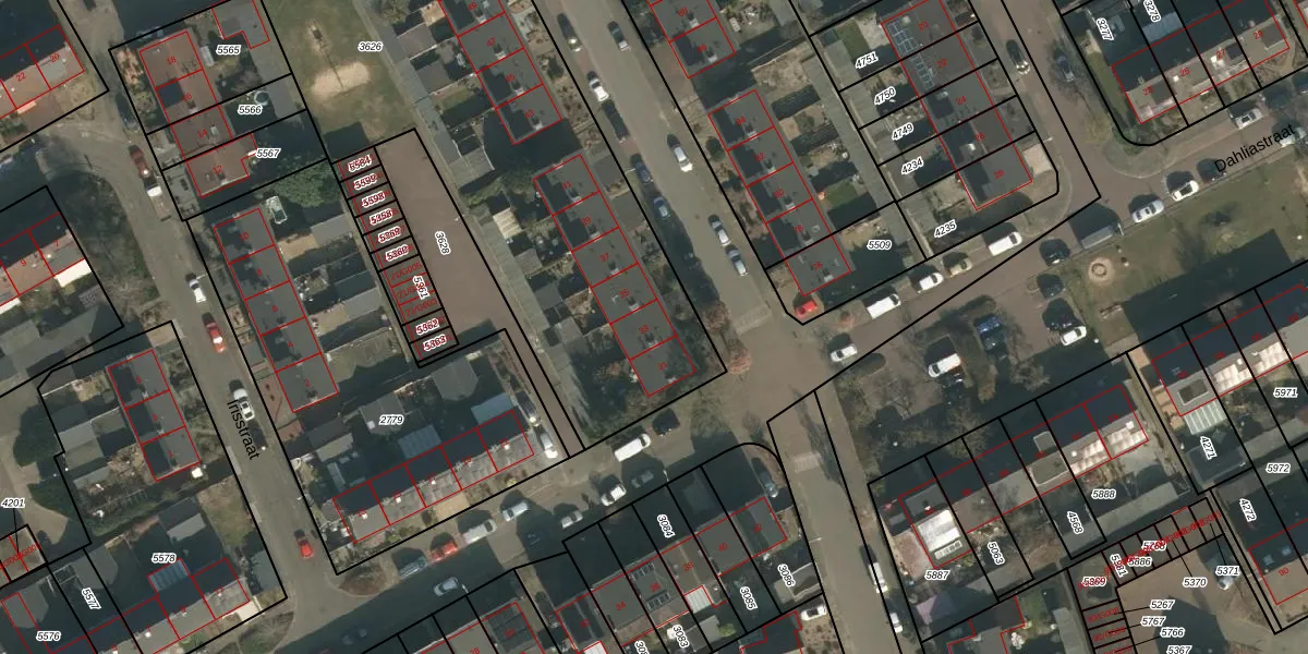 Het perceel waarop Gladiolenstraat 33 staat heeft een oppervlakte van 2539 m². Dit is een zeer groot perceel. De perceeloppervlakte wordt geregistreerd door het Kadaster. Gedetailleerde informatie over de maten van dit perceel kunt u vinden in het rapport Kadastrale kaart met maatvoering van Gladiolenstraat 33.