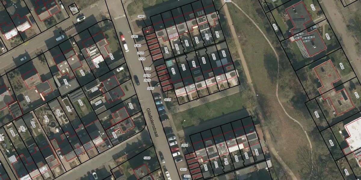 Het perceel waarop Gladiolenstraat 56 staat heeft een oppervlakte van 175 m². Dit is een middelgroot perceel. De perceeloppervlakte wordt geregistreerd door het Kadaster. Gedetailleerde informatie over de maten van dit perceel kunt u vinden in het rapport Kadastrale kaart met maatvoering van Gladiolenstraat 56.