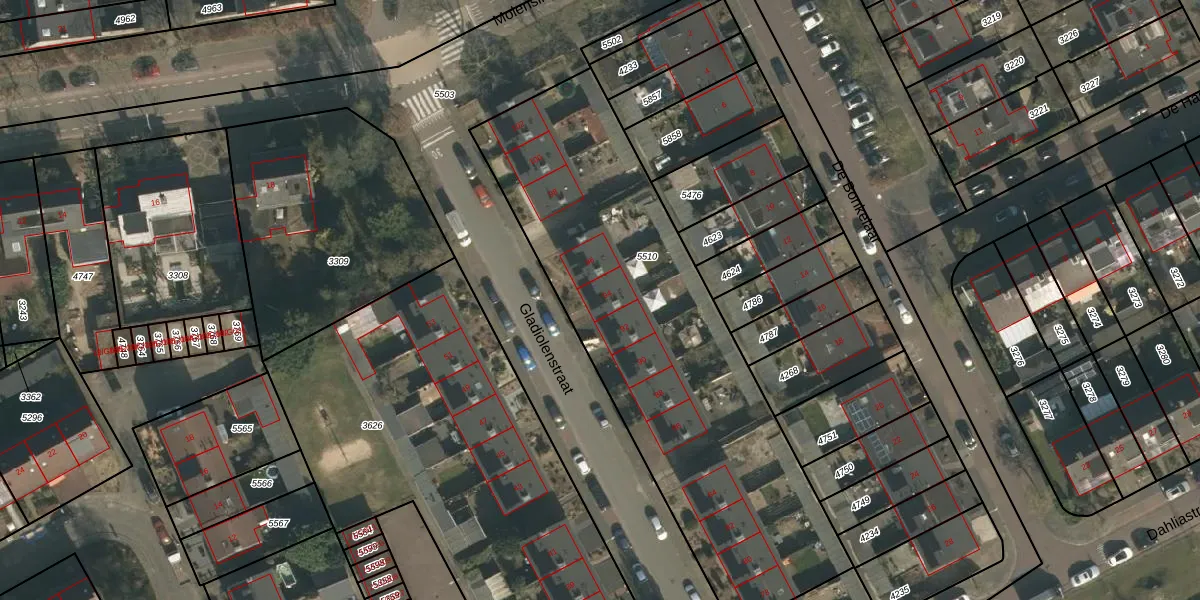 Gladiolenstraat 94 is gelegen op kadastraal perceel HMN01G5510. Deze kadastrale aanduiding is uniek en wordt gebruikt door het Kadaster om eigendomsrechten en andere zakelijke rechten vast te leggen. Het perceel maakt onderdeel uit van de kadastrale gemeente Heumen.