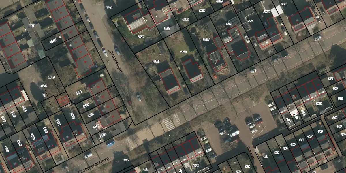 Het perceel waarop Groesbeekseweg 25 staat heeft een oppervlakte van 622 m². Dit is een groot perceel. De perceeloppervlakte wordt geregistreerd door het Kadaster. Gedetailleerde informatie over de maten van dit perceel kunt u vinden in het rapport Kadastrale kaart met maatvoering van Groesbeekseweg 25.