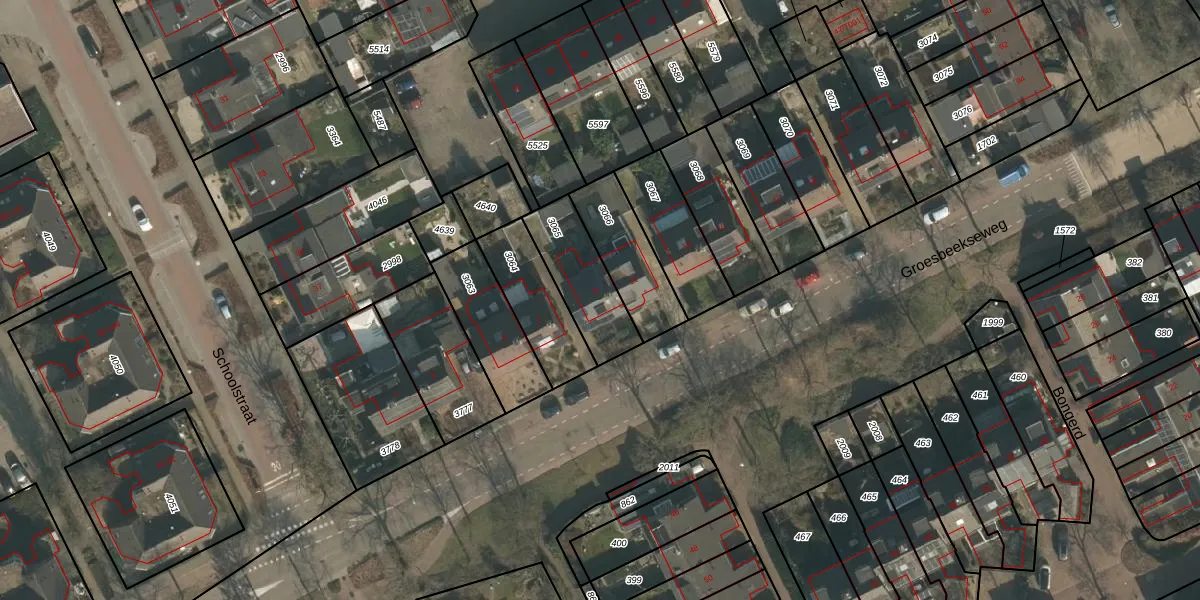 Het perceel waarop Groesbeekseweg 9 staat heeft een oppervlakte van 238 m². Dit is een middelgroot perceel. De perceeloppervlakte wordt geregistreerd door het Kadaster. Gedetailleerde informatie over de maten van dit perceel kunt u vinden in het rapport Kadastrale kaart met maatvoering van Groesbeekseweg 9.