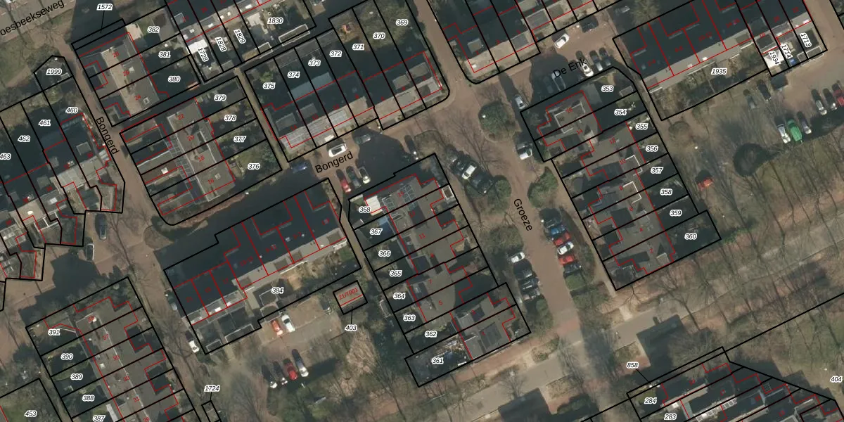 Gebruik de zoekbalk of klik op een perceel voor informatie over de adressen binnen dit perceel.
