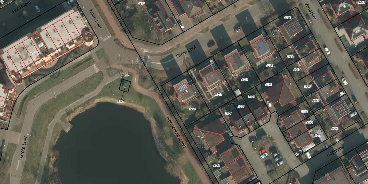 Gebruik de zoekbalk of klik op een perceel voor informatie over de adressen binnen dit perceel.