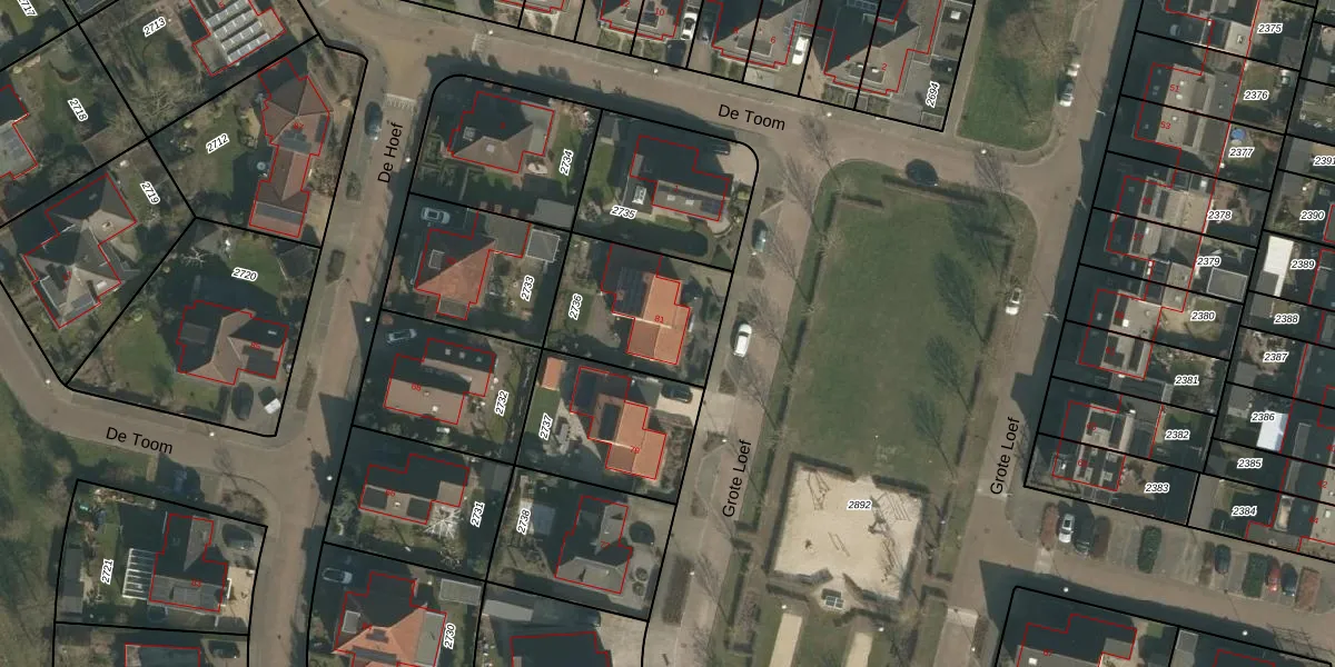 Het perceel waarop Grote Loef 81 staat heeft een oppervlakte van 450 m². Dit is een groot perceel. De perceeloppervlakte wordt geregistreerd door het Kadaster. Gedetailleerde informatie over de maten van dit perceel kunt u vinden in het rapport Kadastrale kaart met maatvoering van Grote Loef 81.