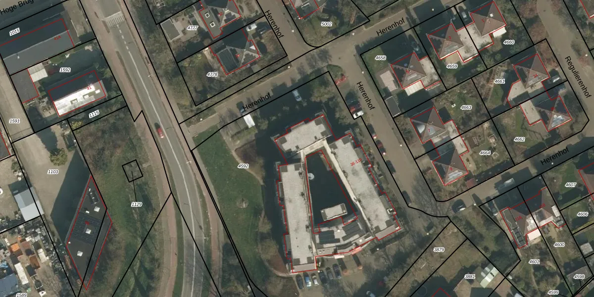 Het perceel waarop Herenhof 86 staat heeft een oppervlakte van 4330 m². Dit is een zeer groot perceel. De perceeloppervlakte wordt geregistreerd door het Kadaster. Gedetailleerde informatie over de maten van dit perceel kunt u vinden in het rapport Kadastrale kaart met maatvoering van Herenhof 86.