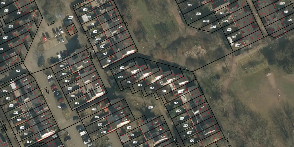 Het perceel waarop Het Alm 20 staat heeft een oppervlakte van 187 m². Dit is een middelgroot perceel. De perceeloppervlakte wordt geregistreerd door het Kadaster. Gedetailleerde informatie over de maten van dit perceel kunt u vinden in het rapport Kadastrale kaart met maatvoering van Het Alm 20.