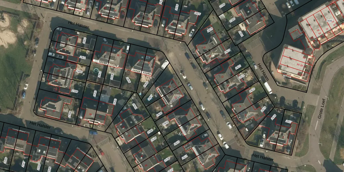 Gebruik de zoekbalk of klik op een perceel voor informatie over de adressen binnen dit perceel.