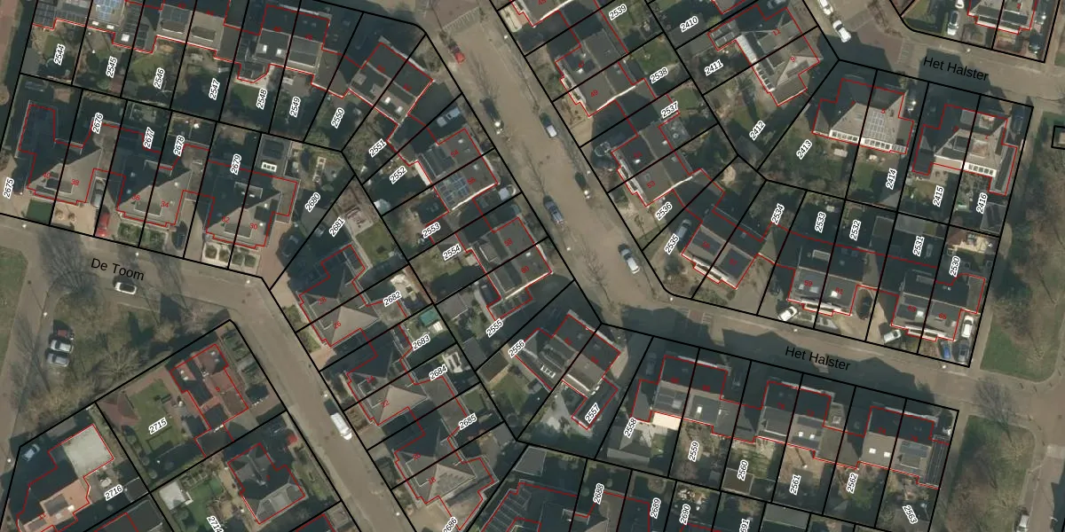 Gebruik de zoekbalk of klik op een perceel voor informatie over de adressen binnen dit perceel.