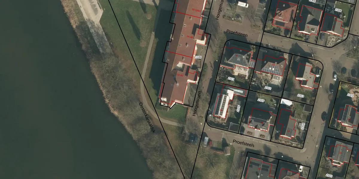 Het perceel waarop Hoogenvaert 52 staat heeft een oppervlakte van 1889 m². Dit is een zeer groot perceel. De perceeloppervlakte wordt geregistreerd door het Kadaster. Gedetailleerde informatie over de maten van dit perceel kunt u vinden in het rapport Kadastrale kaart met maatvoering van Hoogenvaert 52.
