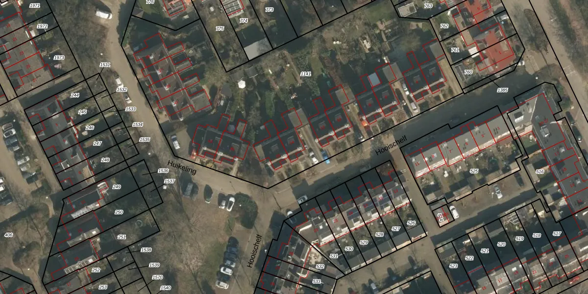 Hooischelf 14 is gelegen op kadastraal perceel HMN01H1141. Deze kadastrale aanduiding is uniek en wordt gebruikt door het Kadaster om eigendomsrechten en andere zakelijke rechten vast te leggen. Het perceel maakt onderdeel uit van de kadastrale gemeente Heumen.