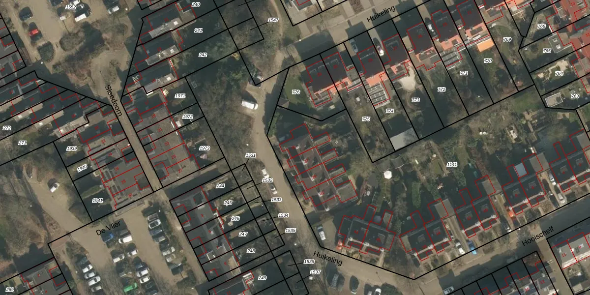 Het perceel waarop Huikeling 35 staat heeft een oppervlakte van 4390 m². Dit is een zeer groot perceel. De perceeloppervlakte wordt geregistreerd door het Kadaster. Gedetailleerde informatie over de maten van dit perceel kunt u vinden in het rapport Kadastrale kaart met maatvoering van Huikeling 35.