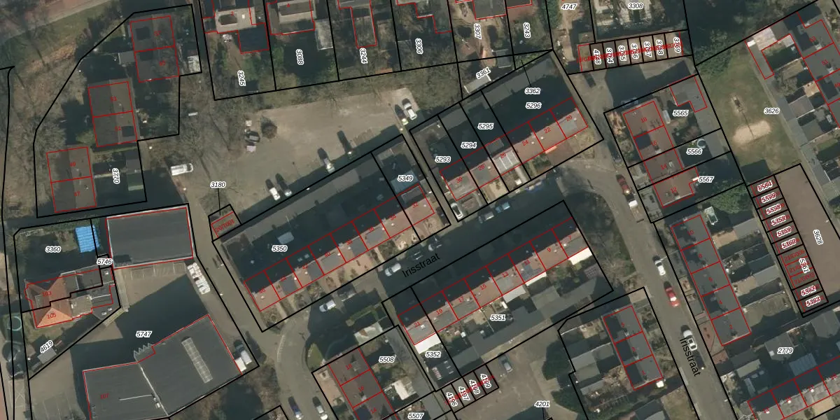 Irisstraat 32 is gelegen op kadastraal perceel HMN01G5349. Deze kadastrale aanduiding is uniek en wordt gebruikt door het Kadaster om eigendomsrechten en andere zakelijke rechten vast te leggen. Het perceel maakt onderdeel uit van de kadastrale gemeente Heumen.