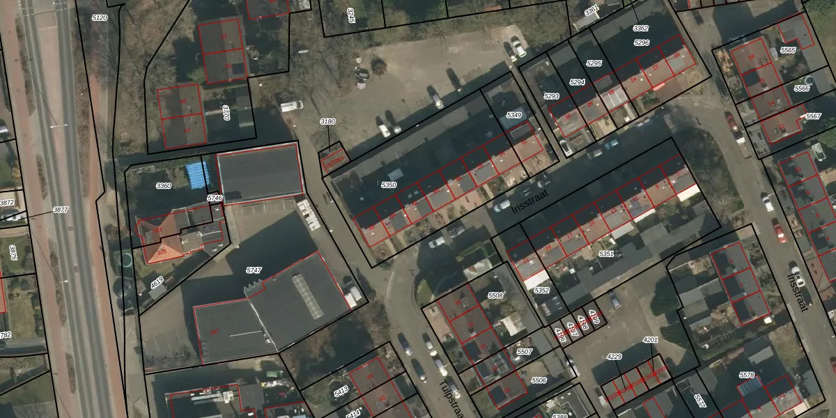Het perceel waarop Irisstraat 42 staat heeft een oppervlakte van 1081 m². Dit is een zeer groot perceel. De perceeloppervlakte wordt geregistreerd door het Kadaster. Gedetailleerde informatie over de maten van dit perceel kunt u vinden in het rapport Kadastrale kaart met maatvoering van Irisstraat 42.