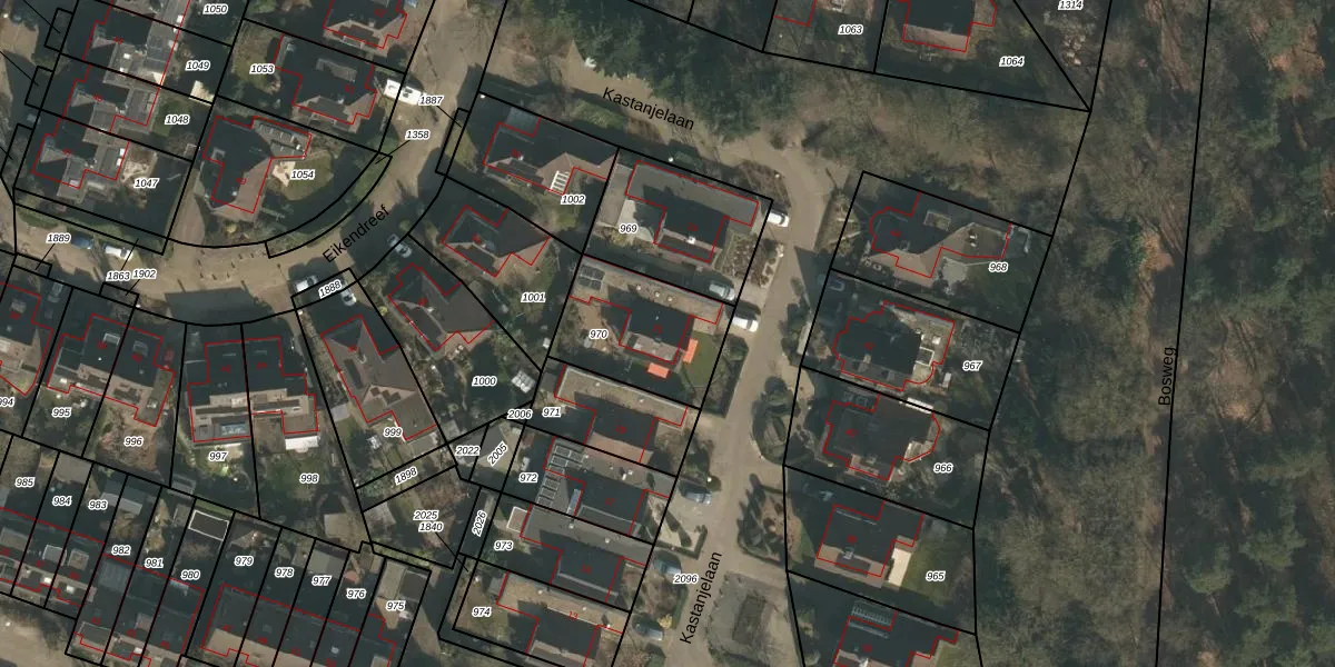 Het perceel waarop Kastanjelaan 21 staat heeft een oppervlakte van 396 m². Dit is een groot perceel. De perceeloppervlakte wordt geregistreerd door het Kadaster. Gedetailleerde informatie over de maten van dit perceel kunt u vinden in het rapport Kadastrale kaart met maatvoering van Kastanjelaan 21.