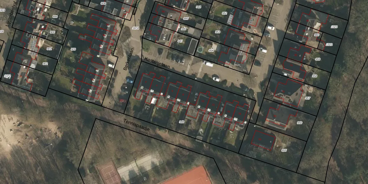 Het perceel waarop Kastanjelaan 8 staat heeft een oppervlakte van 1982 m². Dit is een zeer groot perceel. De perceeloppervlakte wordt geregistreerd door het Kadaster. Gedetailleerde informatie over de maten van dit perceel kunt u vinden in het rapport Kadastrale kaart met maatvoering van Kastanjelaan 8.