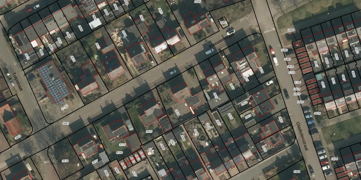 Gebruik de zoekbalk of klik op een perceel voor informatie over de adressen binnen dit perceel.