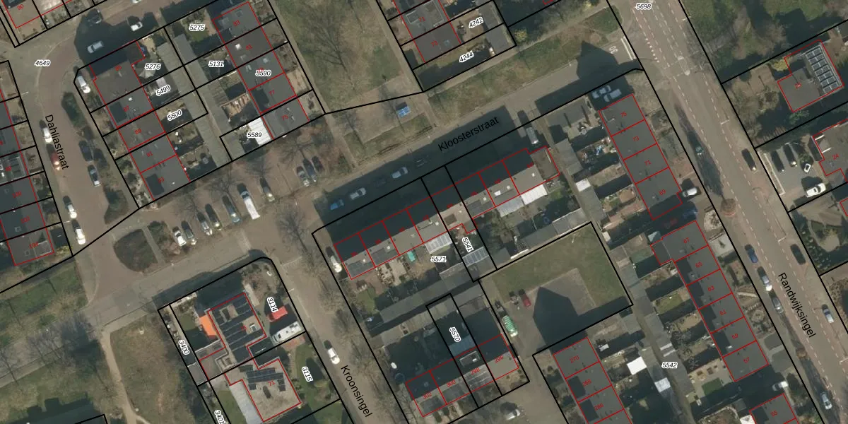 Het perceel waarop Kloosterstraat 42 staat heeft een oppervlakte van 1428 m². Dit is een zeer groot perceel. De perceeloppervlakte wordt geregistreerd door het Kadaster. Gedetailleerde informatie over de maten van dit perceel kunt u vinden in het rapport Kadastrale kaart met maatvoering van Kloosterstraat 42.