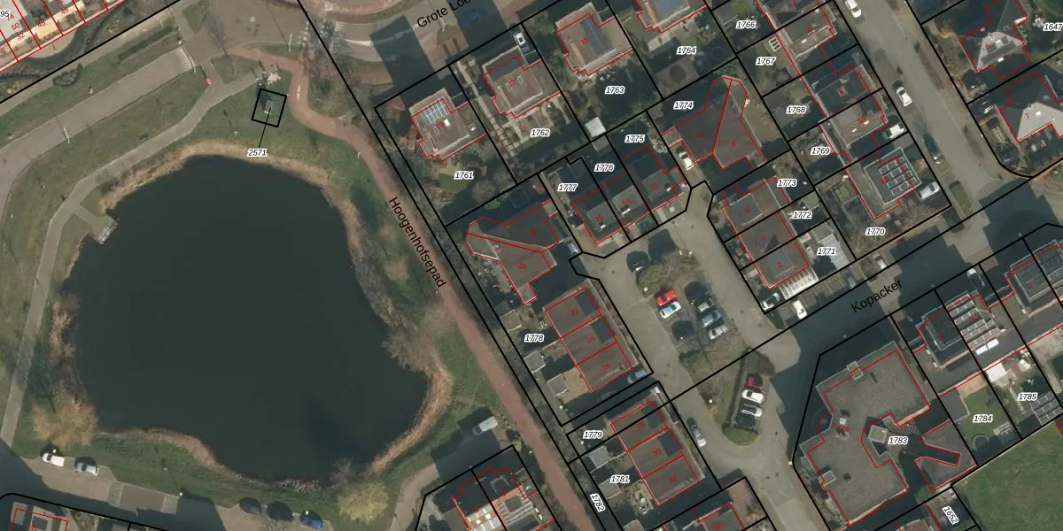 Het perceel waarop Kopacker 20 staat heeft een oppervlakte van 857 m². Dit is een groot perceel. De perceeloppervlakte wordt geregistreerd door het Kadaster. Gedetailleerde informatie over de maten van dit perceel kunt u vinden in het rapport Kadastrale kaart met maatvoering van Kopacker 20.