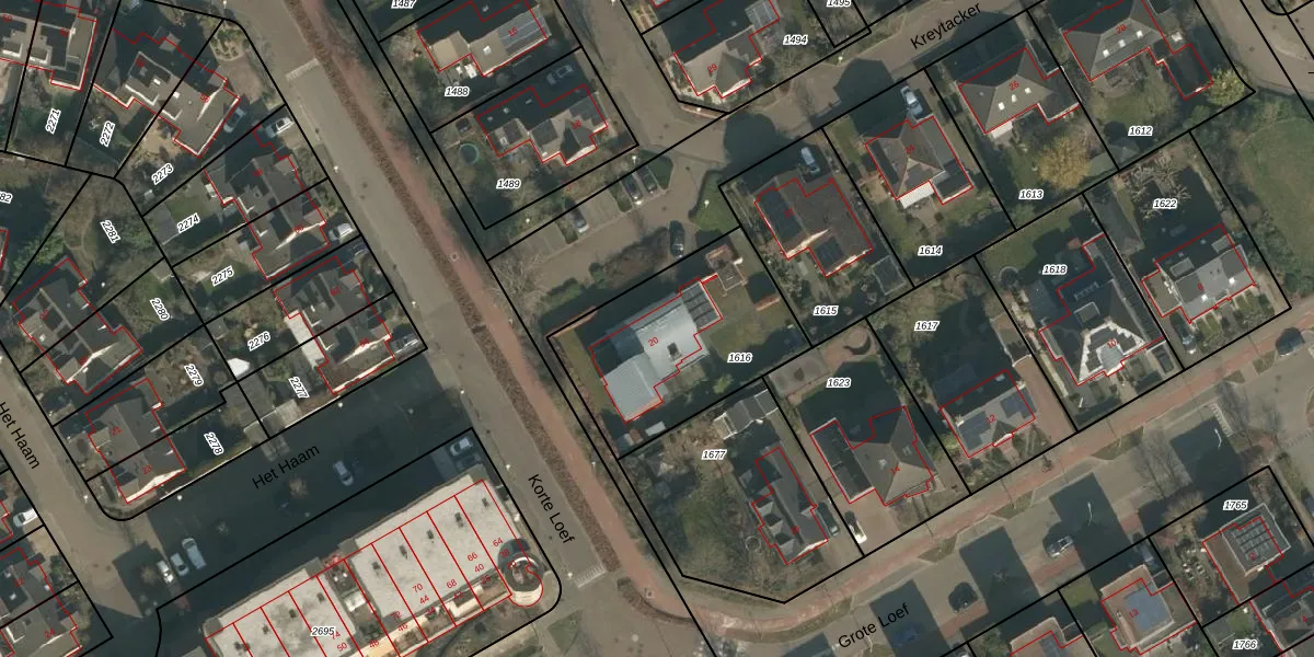 Het perceel waarop Kreytacker 20 staat heeft een oppervlakte van 733 m². Dit is een groot perceel. De perceeloppervlakte wordt geregistreerd door het Kadaster. Gedetailleerde informatie over de maten van dit perceel kunt u vinden in het rapport Kadastrale kaart met maatvoering van Kreytacker 20.