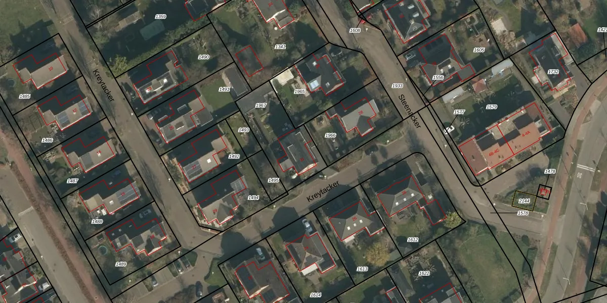 Het perceel waarop Kreytacker 31 staat heeft een oppervlakte van 488 m². Dit is een groot perceel. De perceeloppervlakte wordt geregistreerd door het Kadaster. Gedetailleerde informatie over de maten van dit perceel kunt u vinden in het rapport Kadastrale kaart met maatvoering van Kreytacker 31.