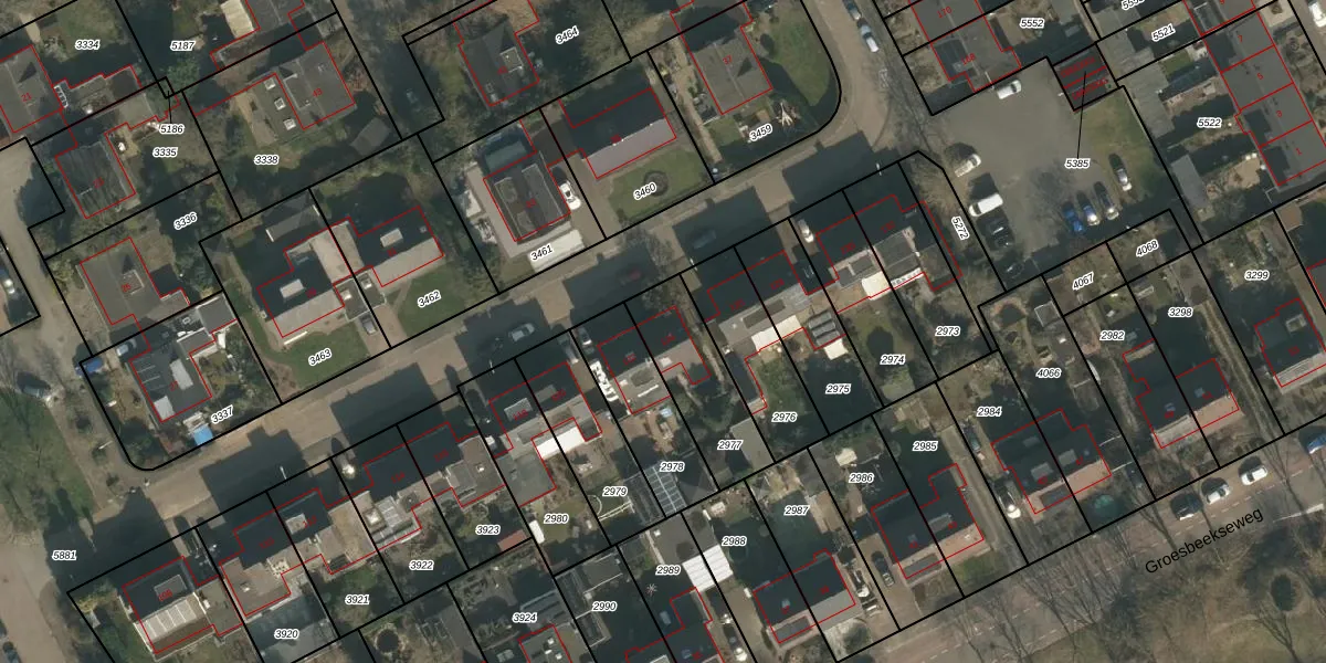 Het adres is gelegen op perceel 2977 in de sectie G en de kadastrale gemeente Heumen. De kadastrale aanduiding is aldus HMN01-G-2977. Het perceel is 297 m² groot. Dat is kleiner dan de gemiddelde perceeloppervlakte in Heumen, dat op 2943,38 m² ligt. De grootste perceeloppervlakte in de kadastrale gemeente is 50,5 ha. De kleinste oppervlakte bedraagt 0 m². Er zijn geen andere adressen aanwezig op het perceel. De laatste wijziging in het de Basisregistratie Kadaster (BRK) was op 12-07-2005.