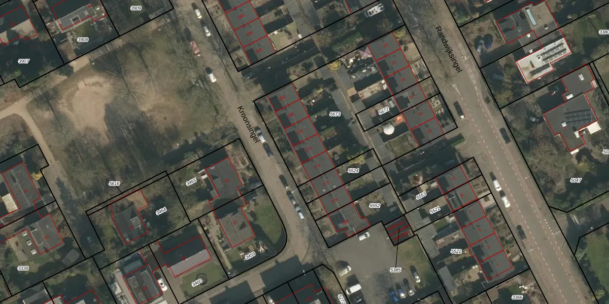 Het perceel waarop Kroonsingel 176 staat heeft een oppervlakte van 1961 m². Dit is een zeer groot perceel. De perceeloppervlakte wordt geregistreerd door het Kadaster. Gedetailleerde informatie over de maten van dit perceel kunt u vinden in het rapport Kadastrale kaart met maatvoering van Kroonsingel 176.
