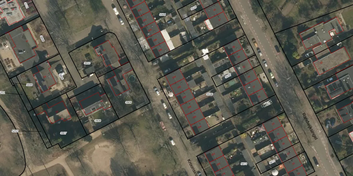 Het perceel waarop Kroonsingel 192 staat heeft een oppervlakte van 1960 m². Dit is een zeer groot perceel. De perceeloppervlakte wordt geregistreerd door het Kadaster. Gedetailleerde informatie over de maten van dit perceel kunt u vinden in het rapport Kadastrale kaart met maatvoering van Kroonsingel 192.