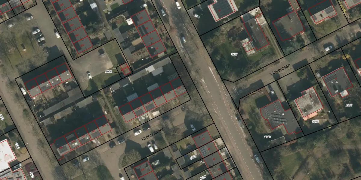 Het perceel waarop Kroonsingel 208 staat heeft een oppervlakte van 7869 m². Dit is een zeer groot perceel. De perceeloppervlakte wordt geregistreerd door het Kadaster. Gedetailleerde informatie over de maten van dit perceel kunt u vinden in het rapport Kadastrale kaart met maatvoering van Kroonsingel 208.