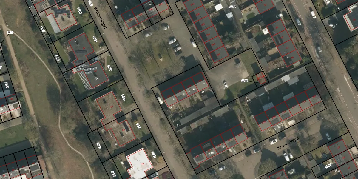 Het perceel waarop Kroonsingel 232 staat heeft een oppervlakte van 7869 m². Dit is een zeer groot perceel. De perceeloppervlakte wordt geregistreerd door het Kadaster. Gedetailleerde informatie over de maten van dit perceel kunt u vinden in het rapport Kadastrale kaart met maatvoering van Kroonsingel 232.