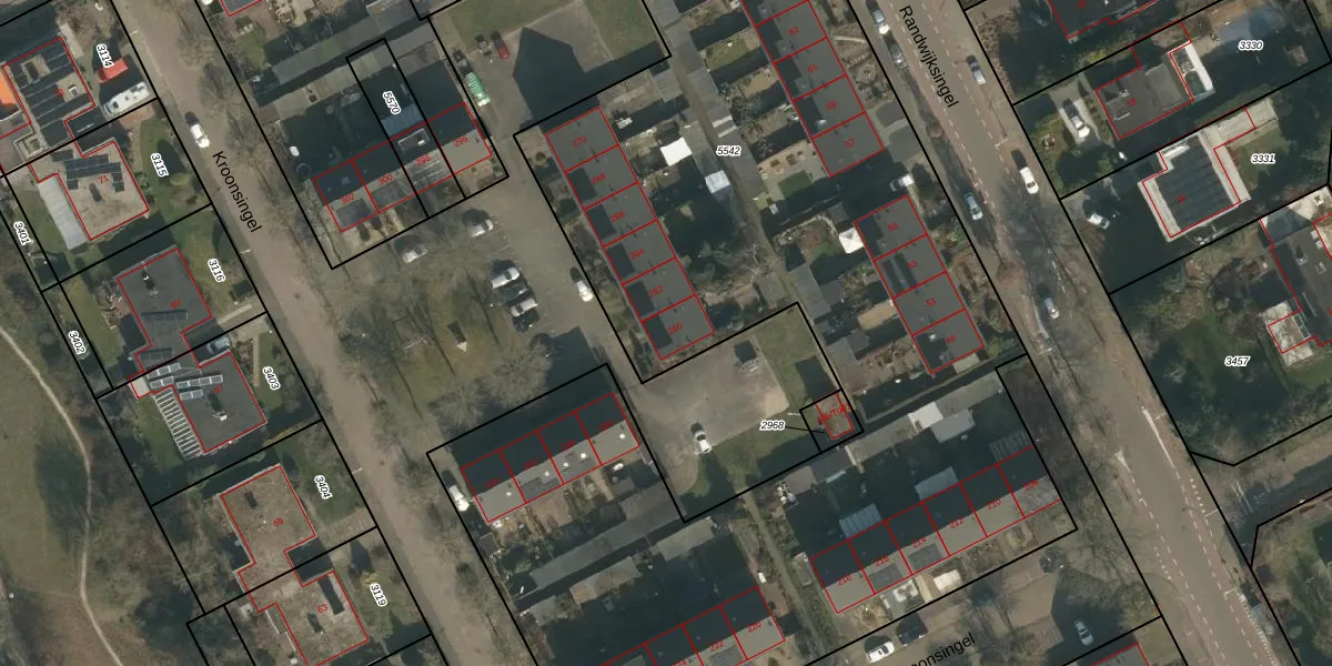 Het perceel waarop Kroonsingel 260 staat heeft een oppervlakte van 7869 m². Dit is een zeer groot perceel. De perceeloppervlakte wordt geregistreerd door het Kadaster. Gedetailleerde informatie over de maten van dit perceel kunt u vinden in het rapport Kadastrale kaart met maatvoering van Kroonsingel 260.