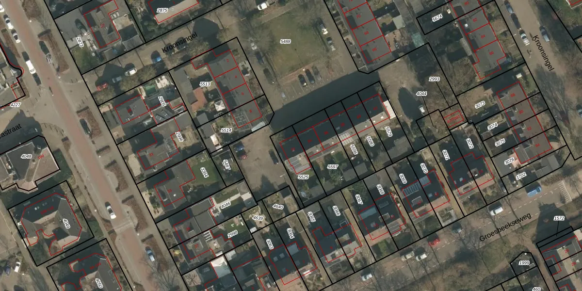 Kroonsingel 32 is gelegen op kadastraal perceel HMN01G5525. Deze kadastrale aanduiding is uniek en wordt gebruikt door het Kadaster om eigendomsrechten en andere zakelijke rechten vast te leggen. Het perceel maakt onderdeel uit van de kadastrale gemeente Heumen.
