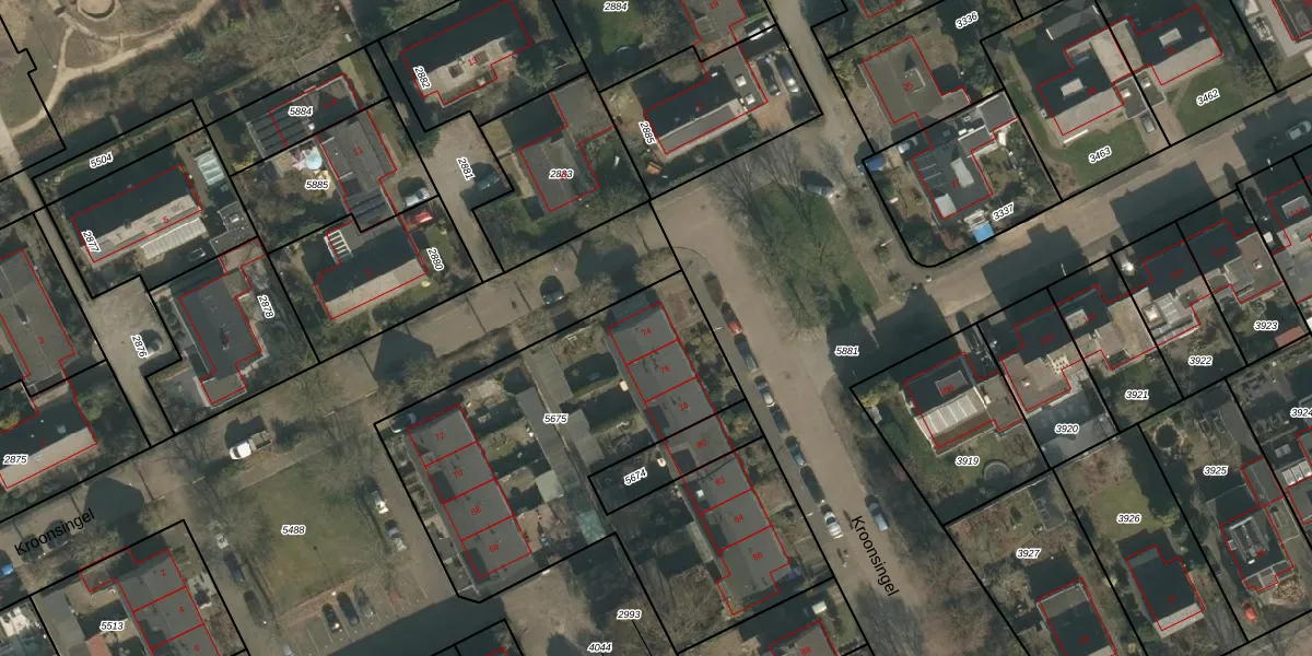 Het perceel waarop Kroonsingel 74 staat heeft een oppervlakte van 2035 m². Dit is een zeer groot perceel. De perceeloppervlakte wordt geregistreerd door het Kadaster. Gedetailleerde informatie over de maten van dit perceel kunt u vinden in het rapport Kadastrale kaart met maatvoering van Kroonsingel 74.