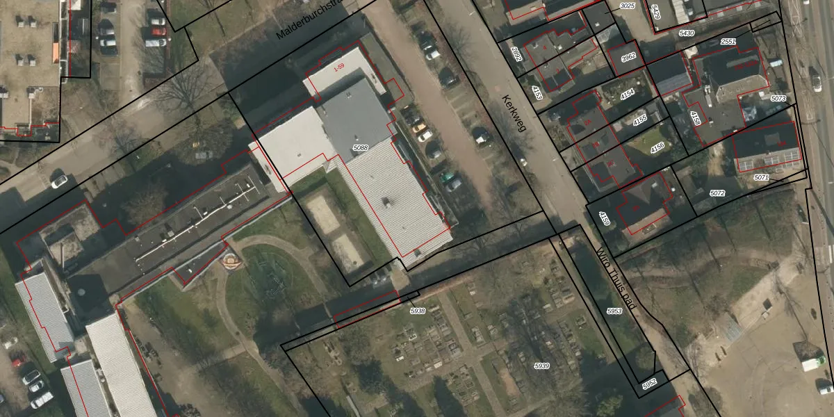 Het perceel waarop Malderburchstraat 21 staat heeft een oppervlakte van 3060 m². Dit is een zeer groot perceel. De perceeloppervlakte wordt geregistreerd door het Kadaster. Gedetailleerde informatie over de maten van dit perceel kunt u vinden in het rapport Kadastrale kaart met maatvoering van Malderburchstraat 21.