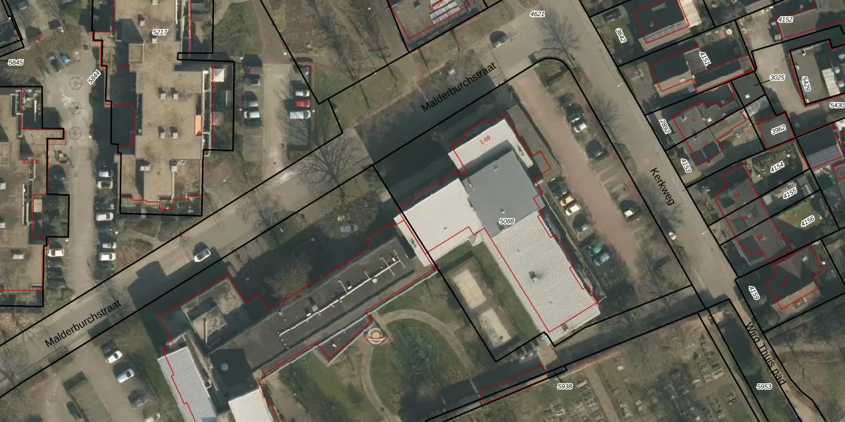 Het perceel waarop Malderburchstraat 25 staat heeft een oppervlakte van 3060 m². Dit is een zeer groot perceel. De perceeloppervlakte wordt geregistreerd door het Kadaster. Gedetailleerde informatie over de maten van dit perceel kunt u vinden in het rapport Kadastrale kaart met maatvoering van Malderburchstraat 25.
