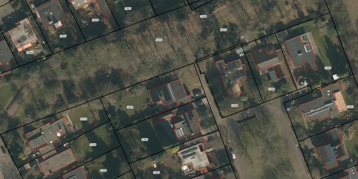 Merellaan 15 is gelegen op kadastraal perceel HMN01G3381. Deze kadastrale aanduiding is uniek en wordt gebruikt door het Kadaster om eigendomsrechten en andere zakelijke rechten vast te leggen. Het perceel maakt onderdeel uit van de kadastrale gemeente Heumen.