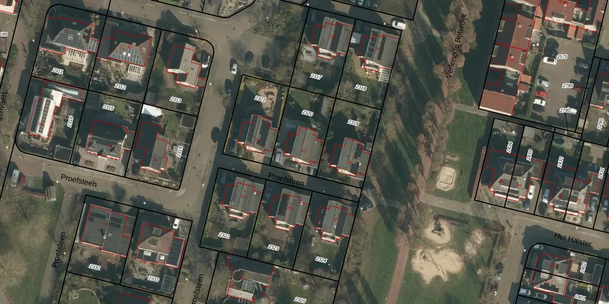 Het perceel waarop Proefsteen 23 staat heeft een oppervlakte van 417 m². Dit is een groot perceel. De perceeloppervlakte wordt geregistreerd door het Kadaster. Gedetailleerde informatie over de maten van dit perceel kunt u vinden in het rapport Kadastrale kaart met maatvoering van Proefsteen 23.