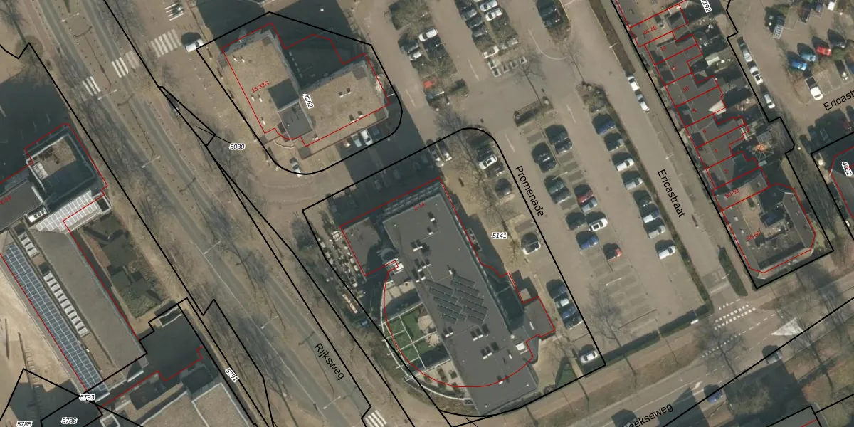 Het perceel waarop Promenade 2 staat heeft een oppervlakte van 2777 m². Dit is een zeer groot perceel. De perceeloppervlakte wordt geregistreerd door het Kadaster. Gedetailleerde informatie over de maten van dit perceel kunt u vinden in het rapport Kadastrale kaart met maatvoering van Promenade 2.