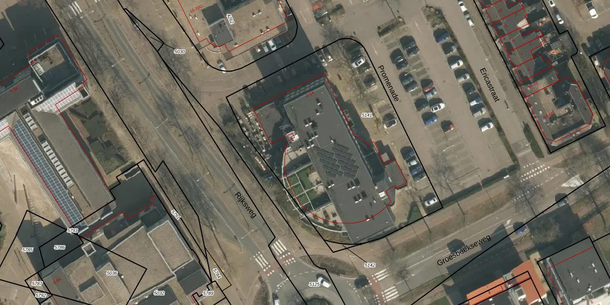Het adres is gelegen op perceel 5141 in de sectie G en de kadastrale gemeente Heumen. De kadastrale aanduiding is aldus HMN01-G-5141. De gemiddelde perceelgrootte in Heumen is 2941,35 m². Dit perceel is kleiner: de perceeloppervlakte bedraagt 2777 m². De grootste perceeloppervlakte in de kadastrale gemeente is 50,5 ha. De kleinste oppervlakte bedraagt 0 m². Op het perceel liggen in totaal 17 adressen. De laatste wijziging in het de Basisregistratie Kadaster (BRK) was op 24-12-2004.