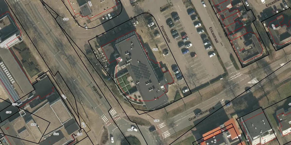 Het adres is gelegen op perceel 5141 in de sectie G en de kadastrale gemeente Heumen. De kadastrale aanduiding is aldus HMN01-G-5141. De gemiddelde perceelgrootte in Heumen is 2941,35 m². Dit perceel is kleiner: de perceeloppervlakte bedraagt 2777 m². De grootste perceeloppervlakte in de kadastrale gemeente is 50,5 ha. De kleinste oppervlakte bedraagt 0 m². Op het perceel liggen in totaal 17 adressen. De laatste wijziging in het de Basisregistratie Kadaster (BRK) was op 24-12-2004.