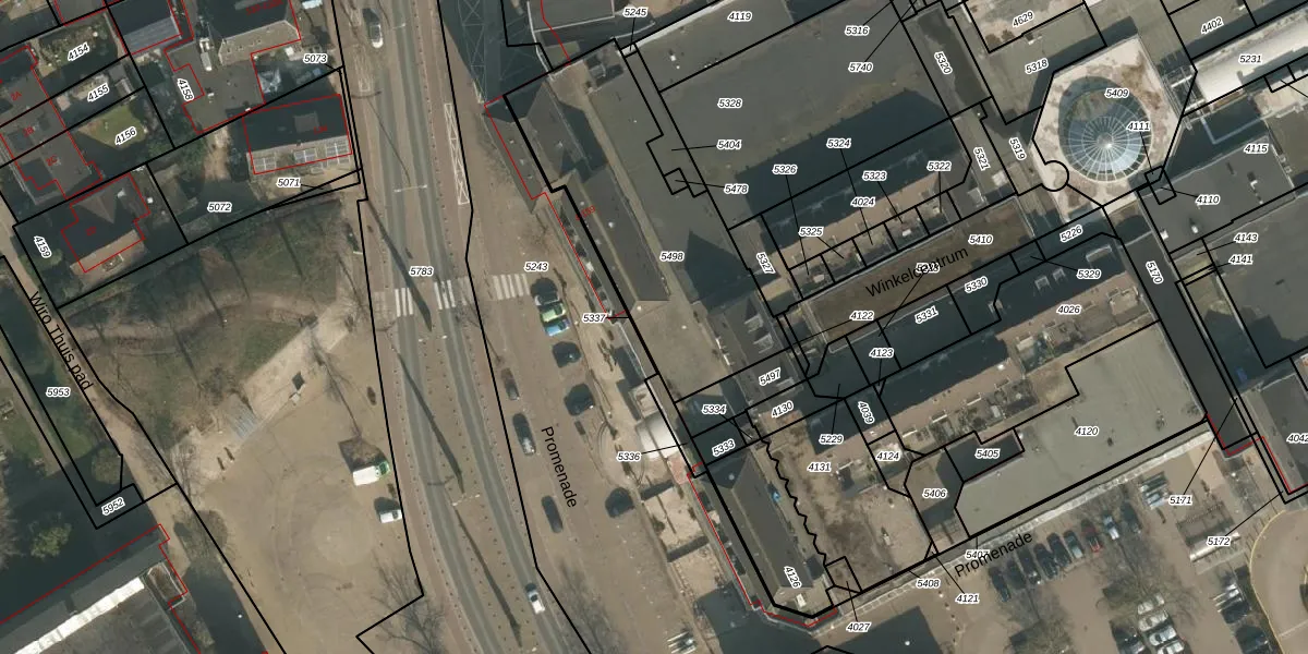 Het perceel waarop Promenade 7 staat heeft een oppervlakte van 1035 m². Dit is een zeer groot perceel. De perceeloppervlakte wordt geregistreerd door het Kadaster. Gedetailleerde informatie over de maten van dit perceel kunt u vinden in het rapport Kadastrale kaart met maatvoering van Promenade 7.
