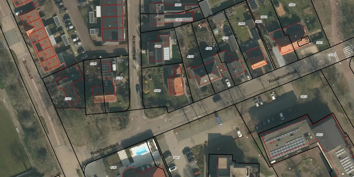 Raadhuisstraat 8 is gelegen op kadastraal perceel HMN01G5400. Deze kadastrale aanduiding is uniek en wordt gebruikt door het Kadaster om eigendomsrechten en andere zakelijke rechten vast te leggen. Het perceel maakt onderdeel uit van de kadastrale gemeente Heumen.