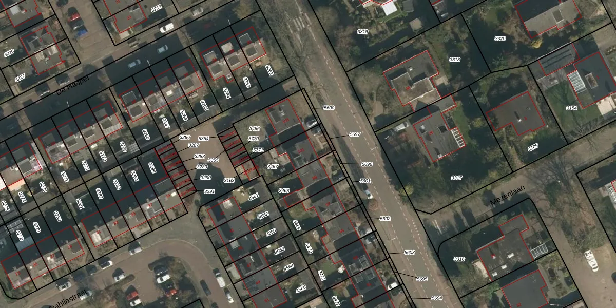 Het adres is gelegen op perceel 3467 in de sectie G en de kadastrale gemeente Heumen. De kadastrale aanduiding is aldus HMN01-G-3467. Het perceel is kleiner dan gemiddeld in Heumen. Het perceel is 238 m² groot, terwijl het gemiddelde ligt op 2943,38 m². Het grootste perceel in de kadastrale gemeente is 50,5 ha. Het kleinste perceel heeft een oppervlakte van 0 m². Er zijn geen andere adressen aanwezig op het perceel. De huidige grenzen van het perceel zijn digitaal in de Basisregistratie Kadaster (BRK) geregistreerd op 07-05-2007.