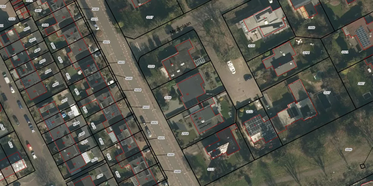 Gebruik de zoekbalk of klik op een perceel voor informatie over de adressen binnen dit perceel.