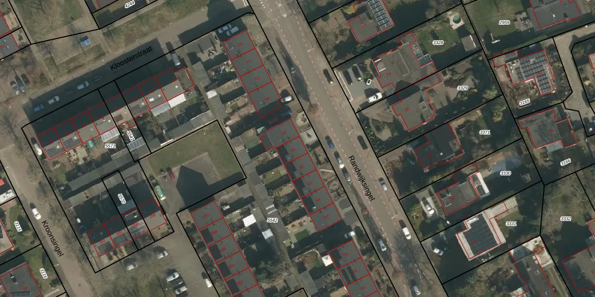 Het perceel waarop Randwijksingel 65 staat heeft een oppervlakte van 7869 m². Dit is een zeer groot perceel. De perceeloppervlakte wordt geregistreerd door het Kadaster. Gedetailleerde informatie over de maten van dit perceel kunt u vinden in het rapport Kadastrale kaart met maatvoering van Randwijksingel 65.