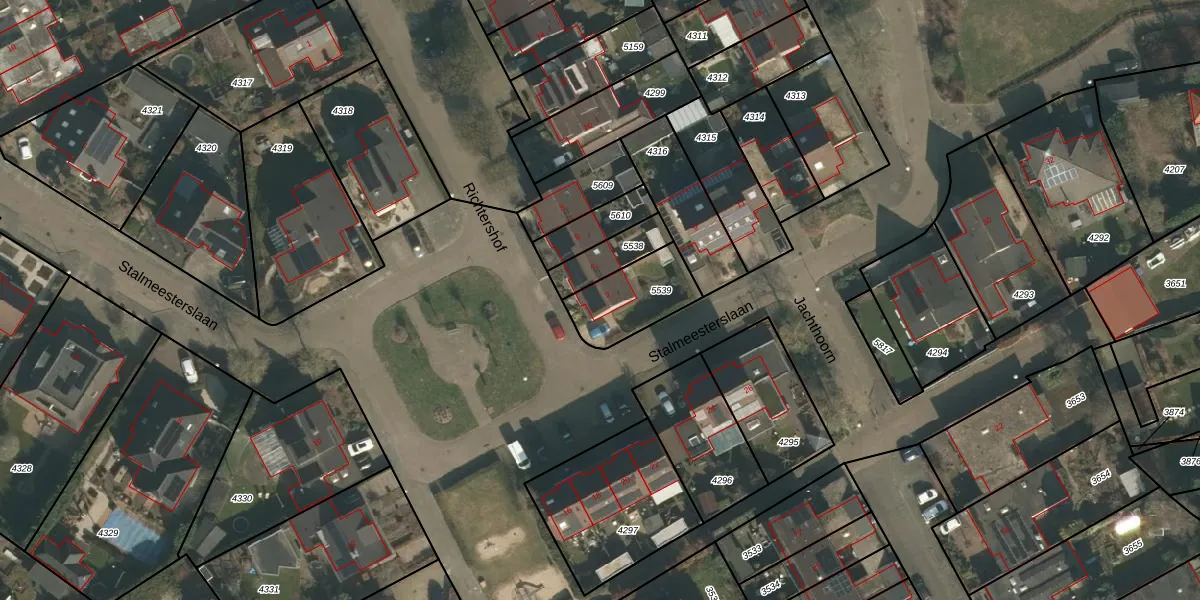 Het perceel waarop Richtershof 2 staat heeft een oppervlakte van 216 m². Dit is een middelgroot perceel. De perceeloppervlakte wordt geregistreerd door het Kadaster. Gedetailleerde informatie over de maten van dit perceel kunt u vinden in het rapport Kadastrale kaart met maatvoering van Richtershof 2.